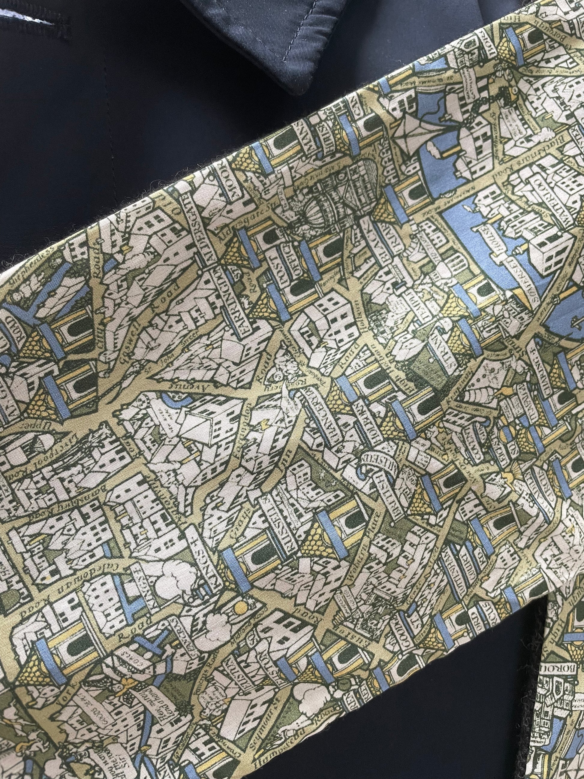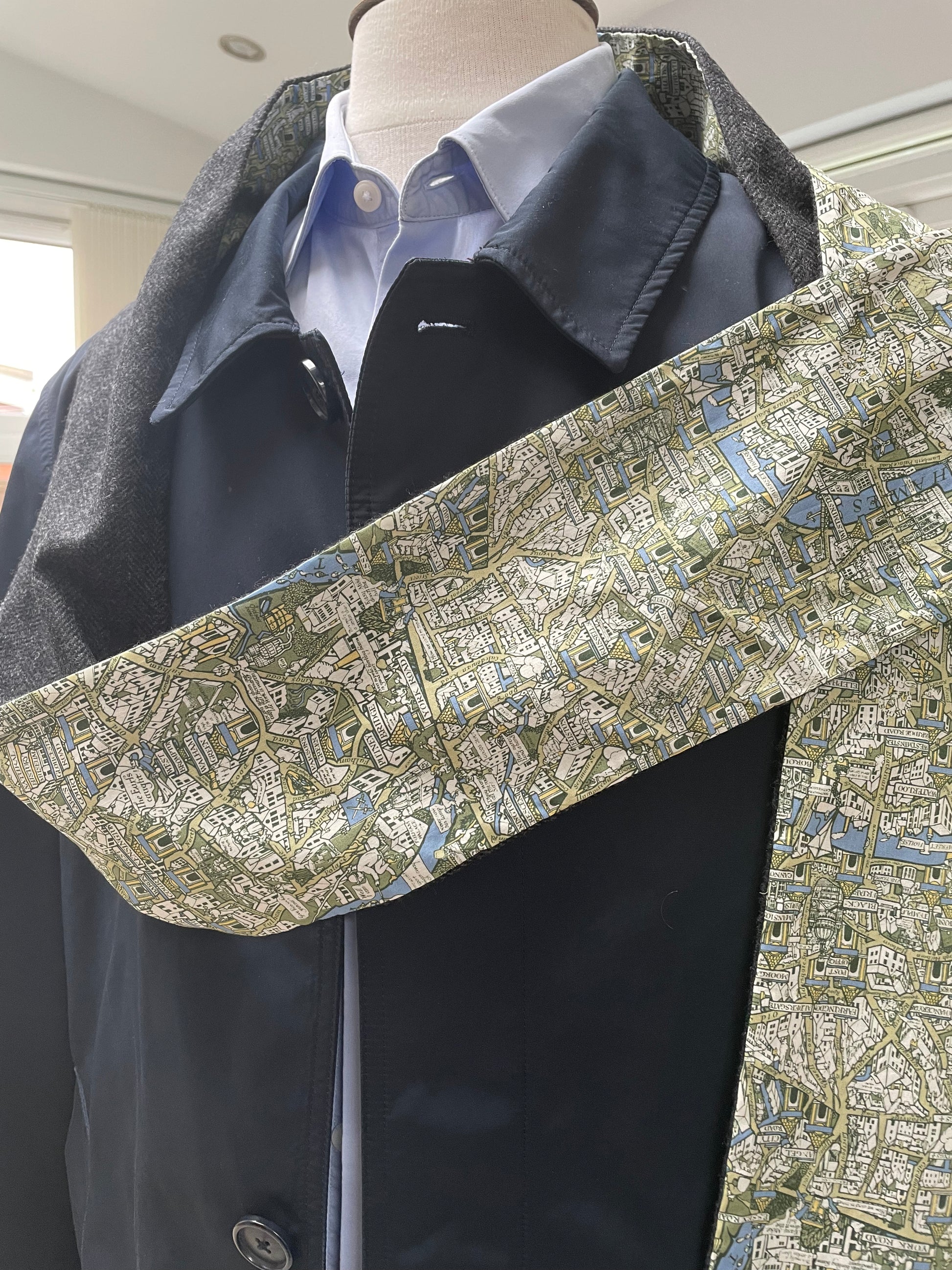 Grey merino lambswool and Liberty London Smoke Tana Lawn cotton. The scarf is 2 metres in length and approximately 13cm in width.