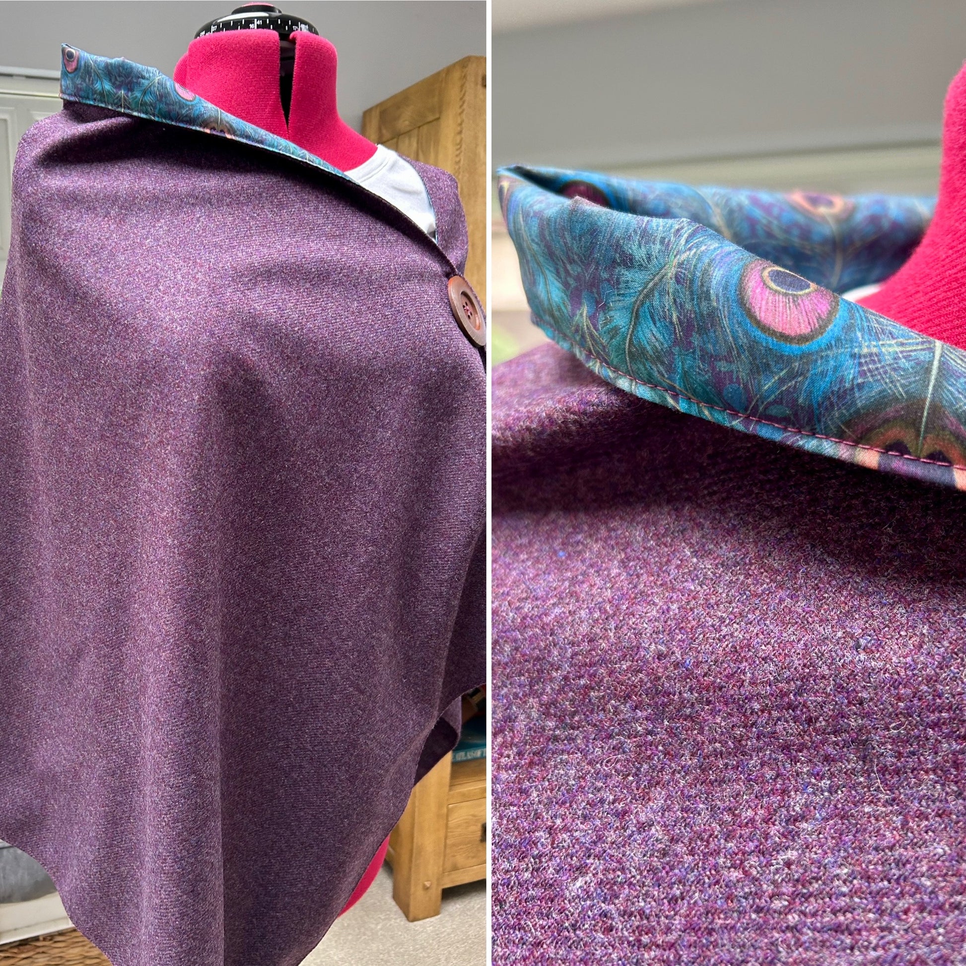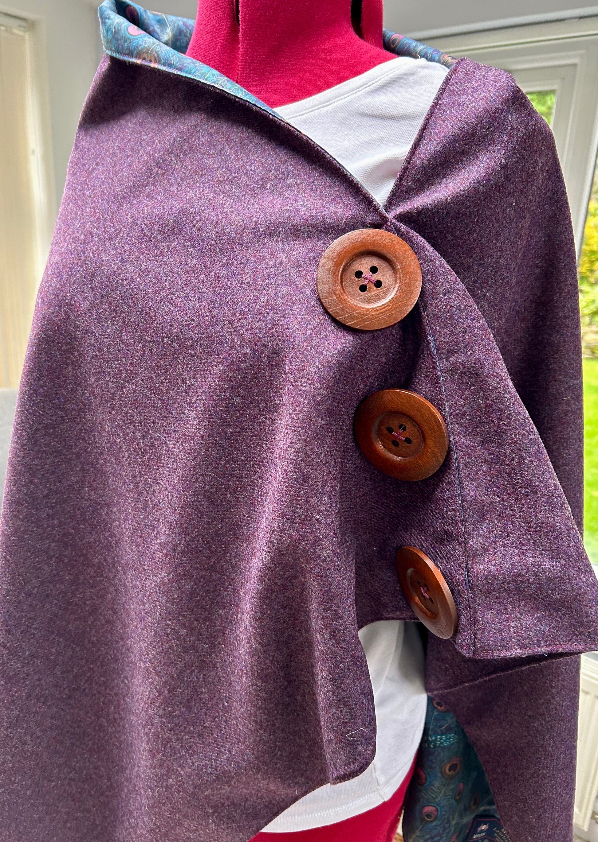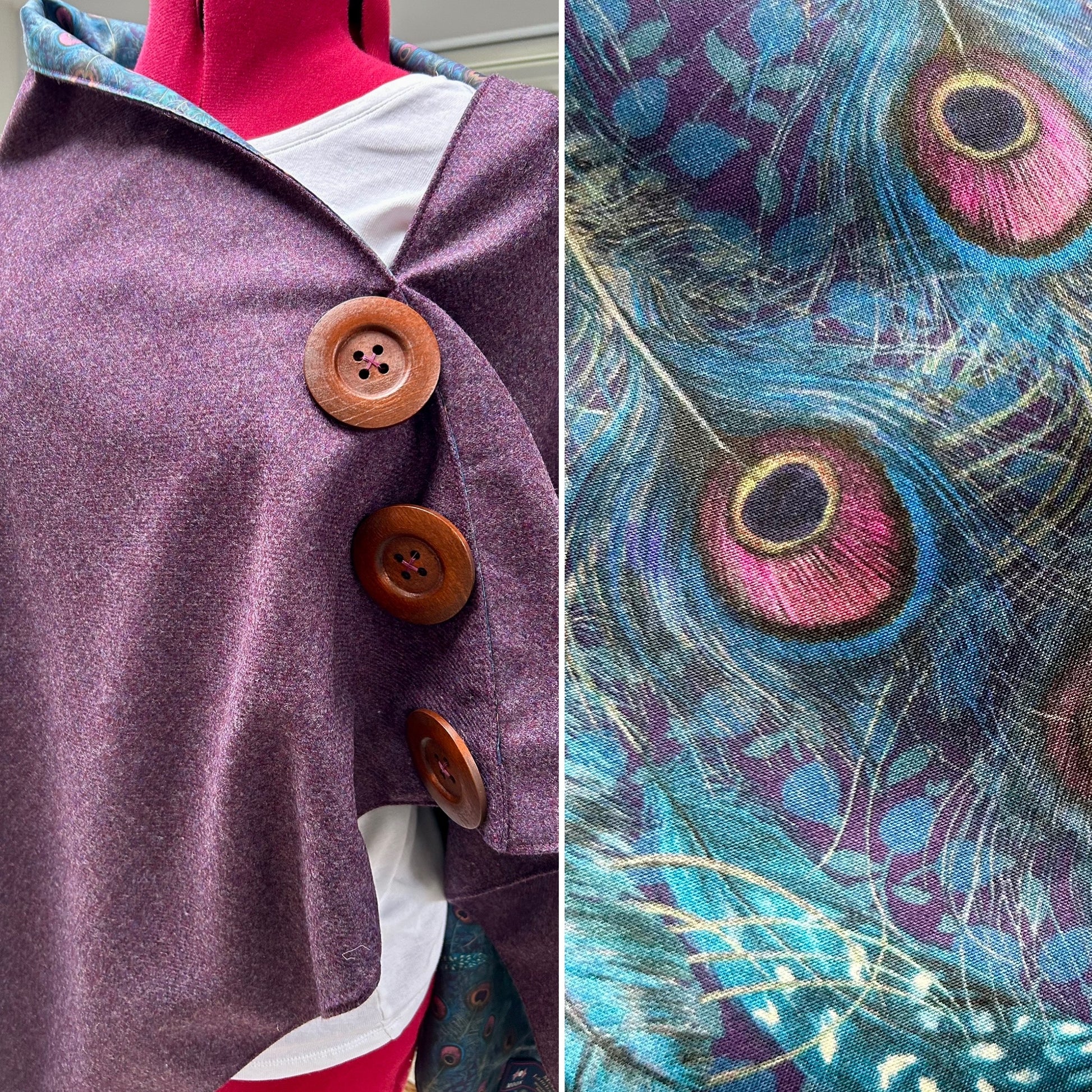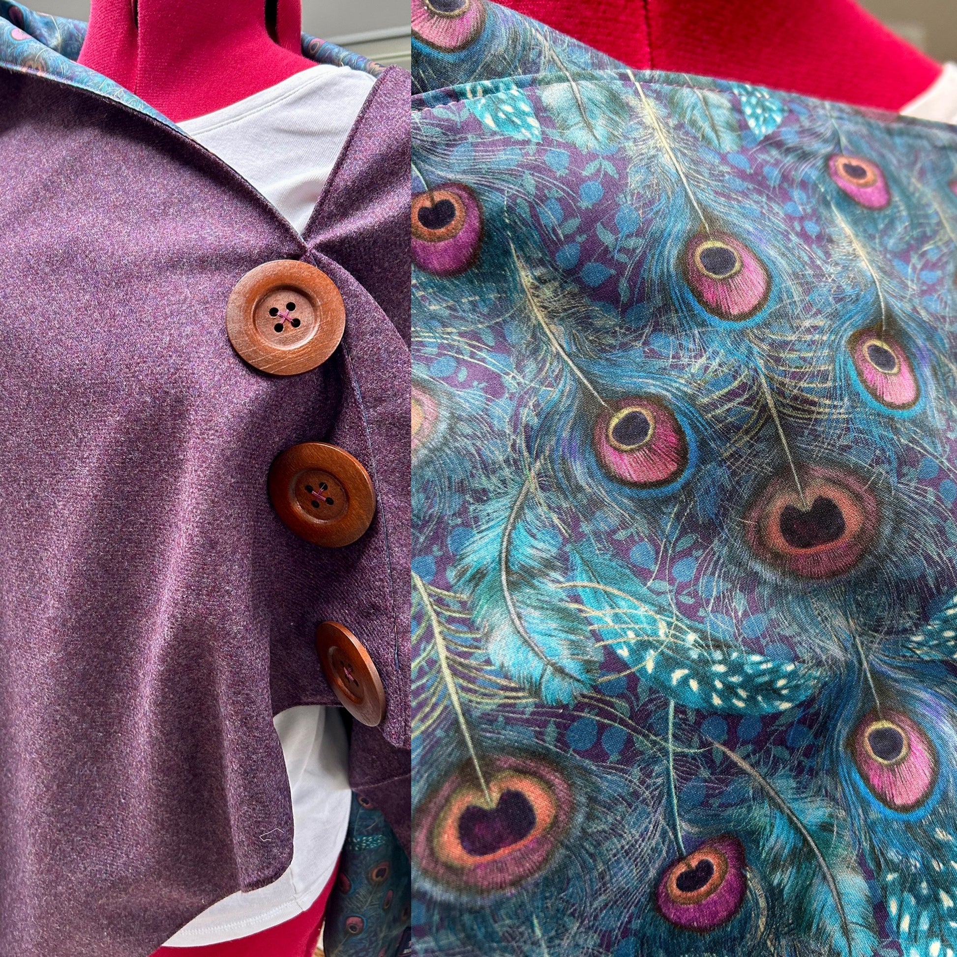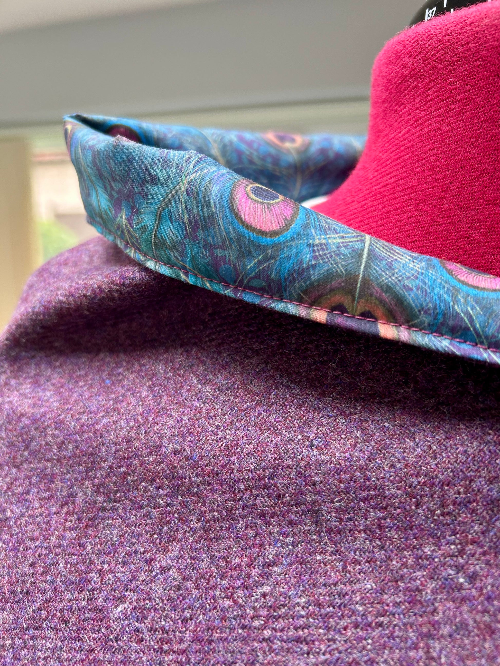 Grape Merino Lambswool and Liberty Peacock Manor Tana Lawn.
