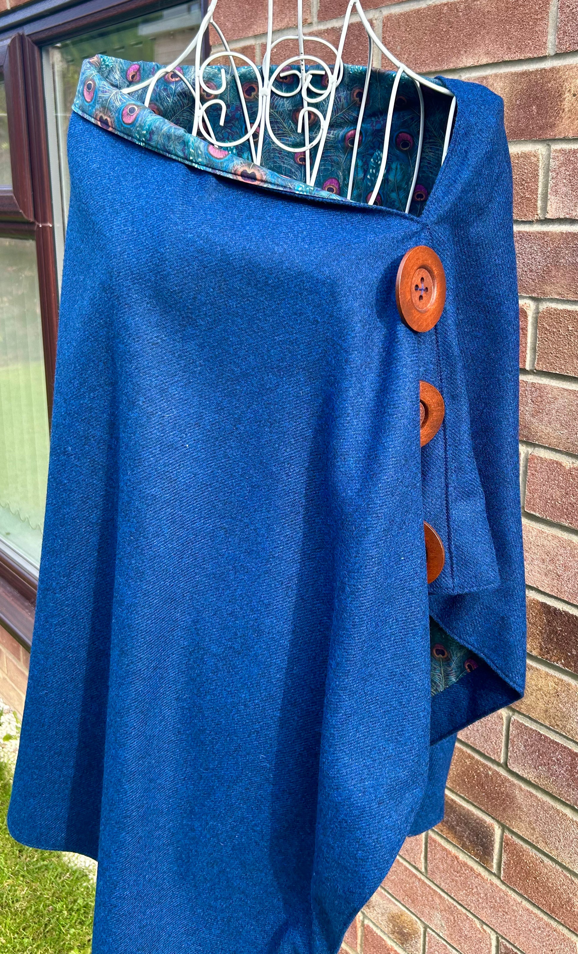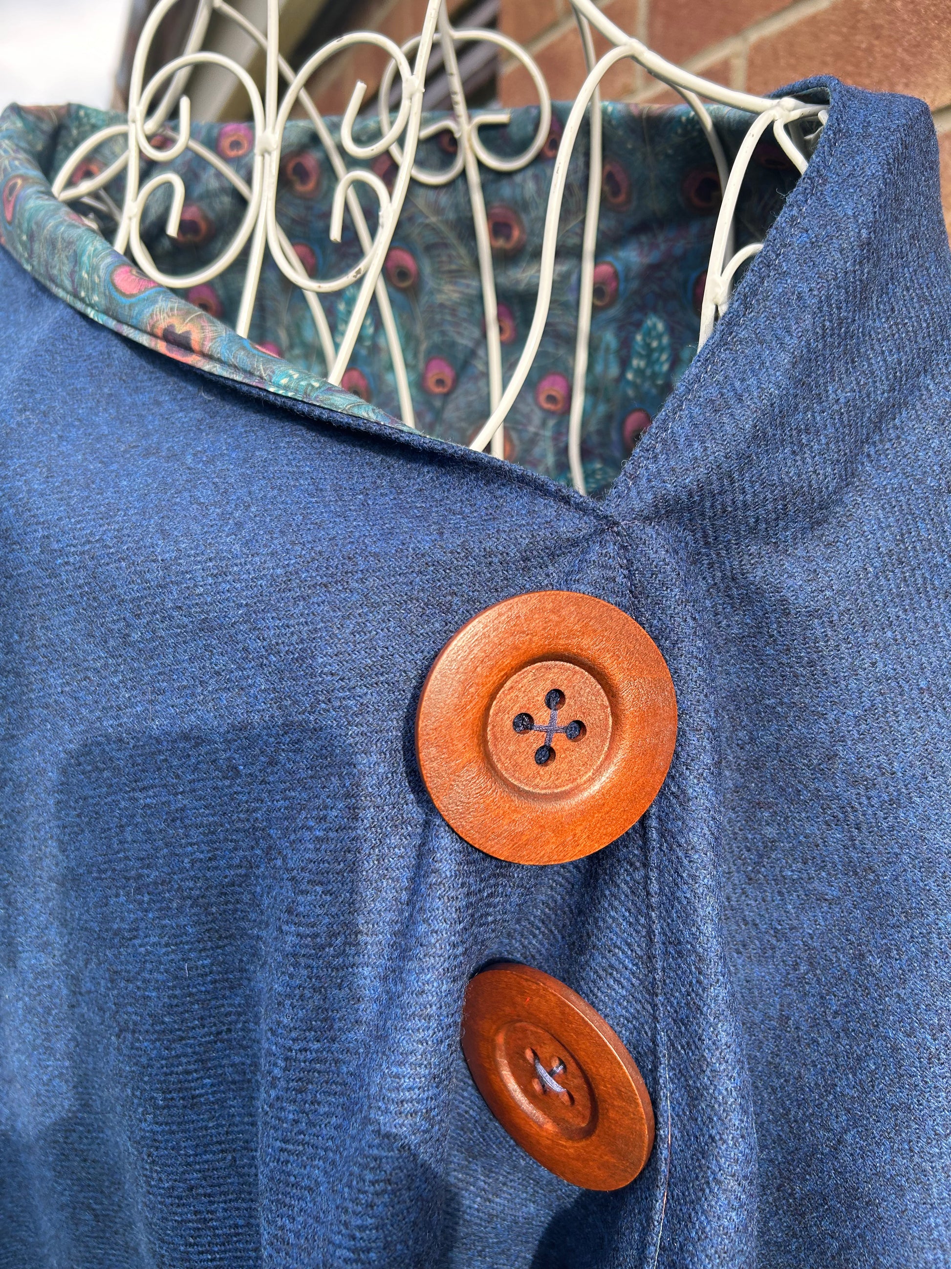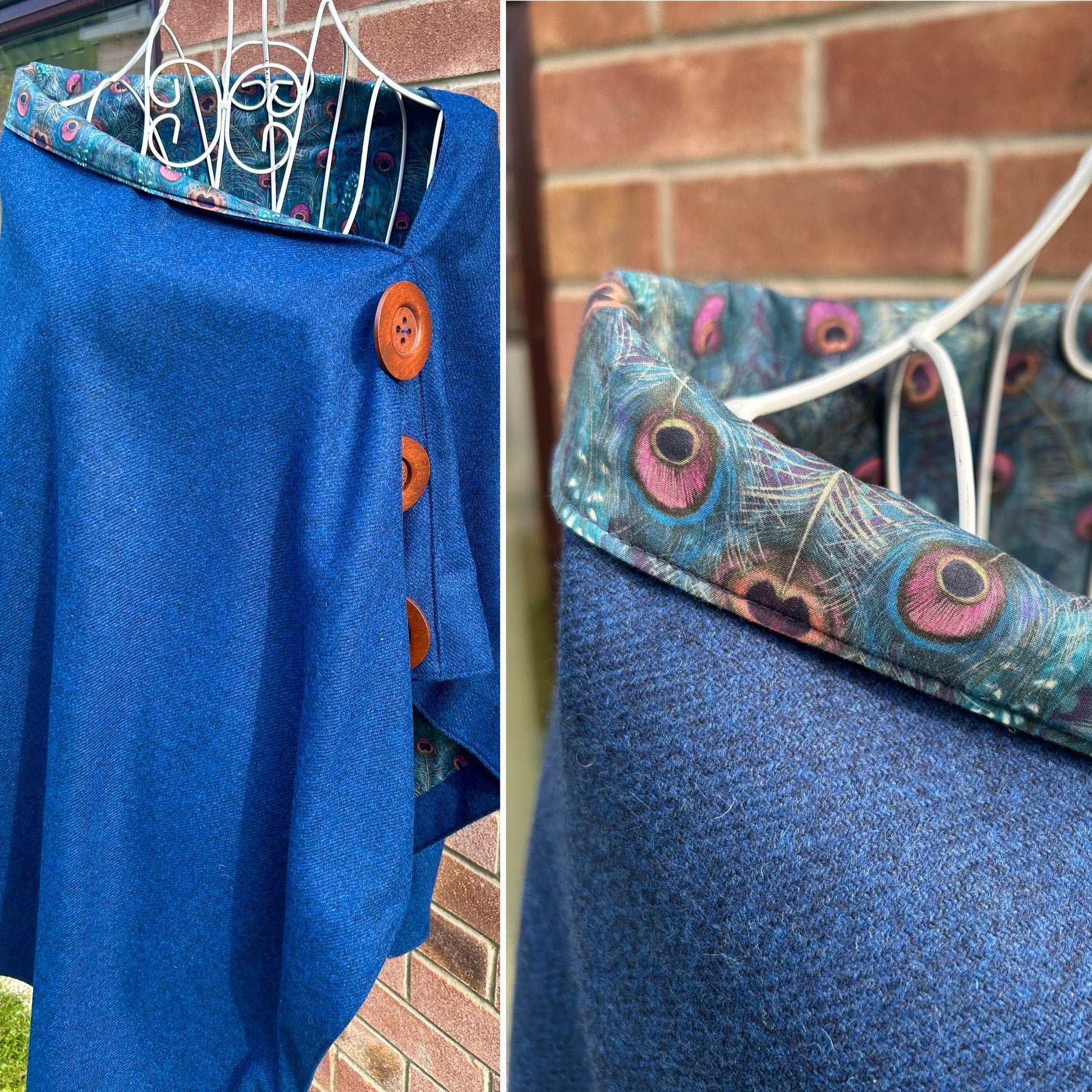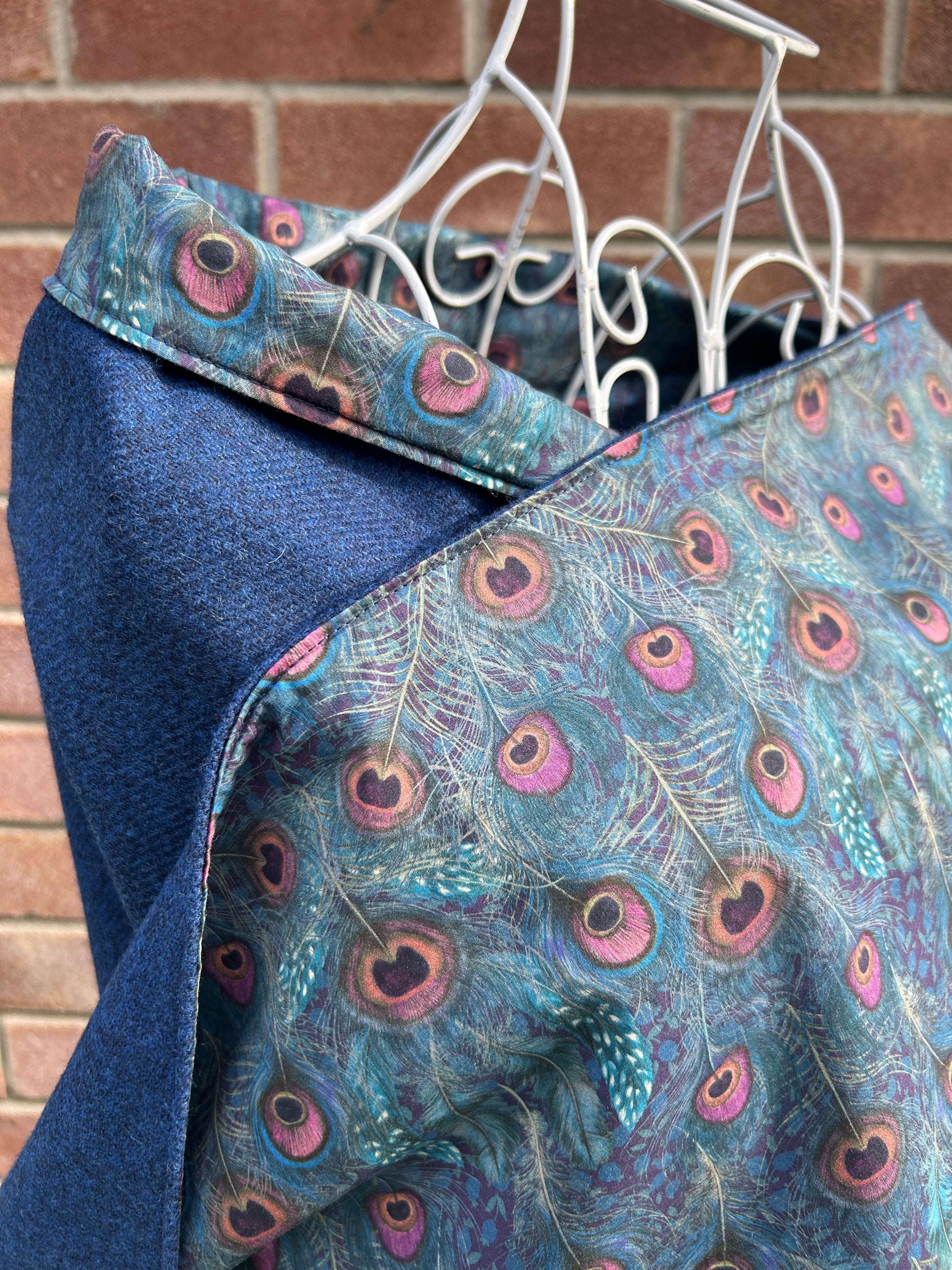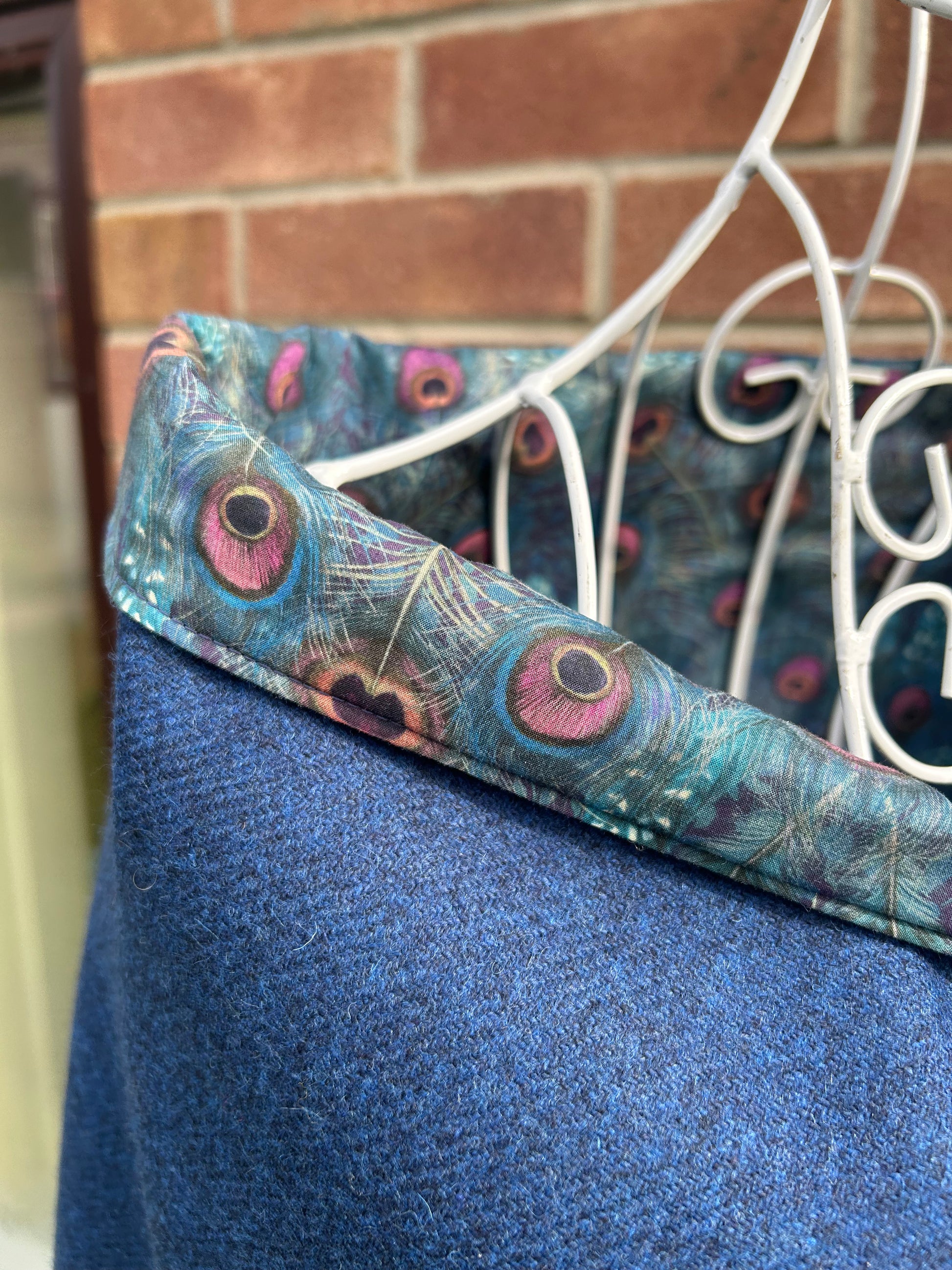 Bright Blue Merino Lambswool and Liberty Peacock Manor Tana Lawn.