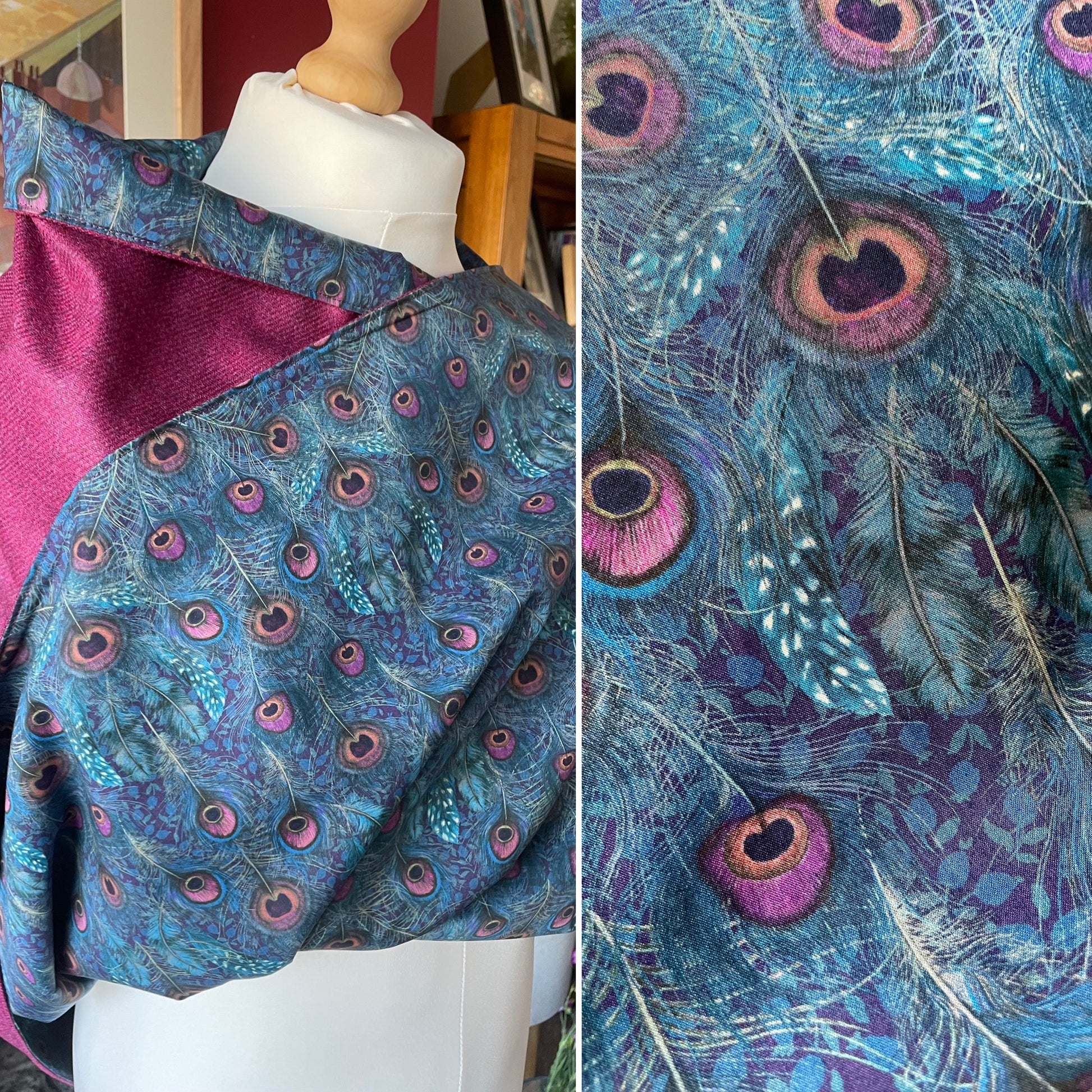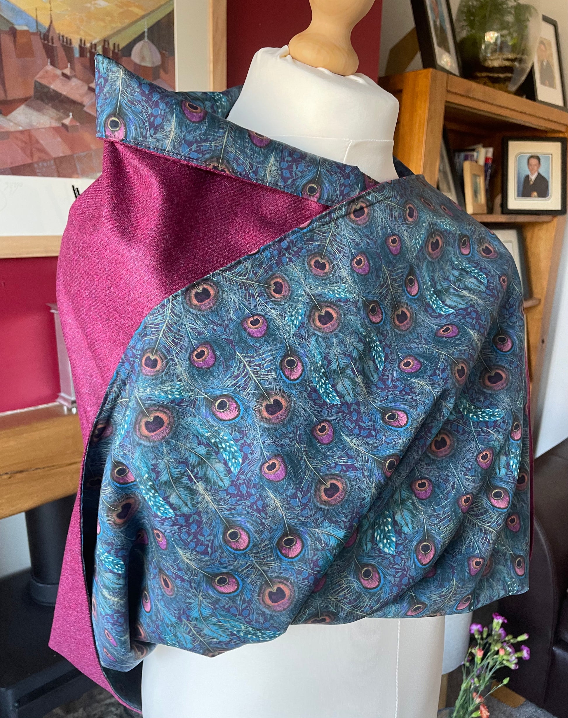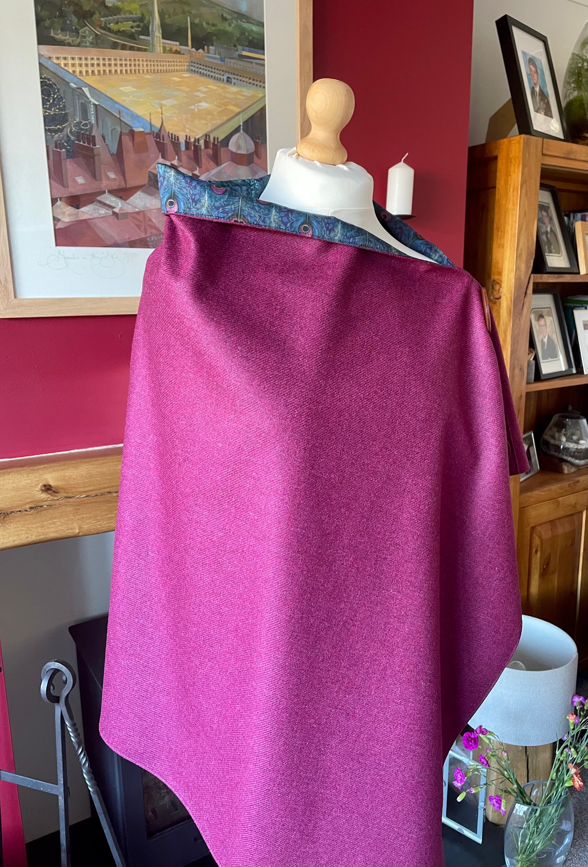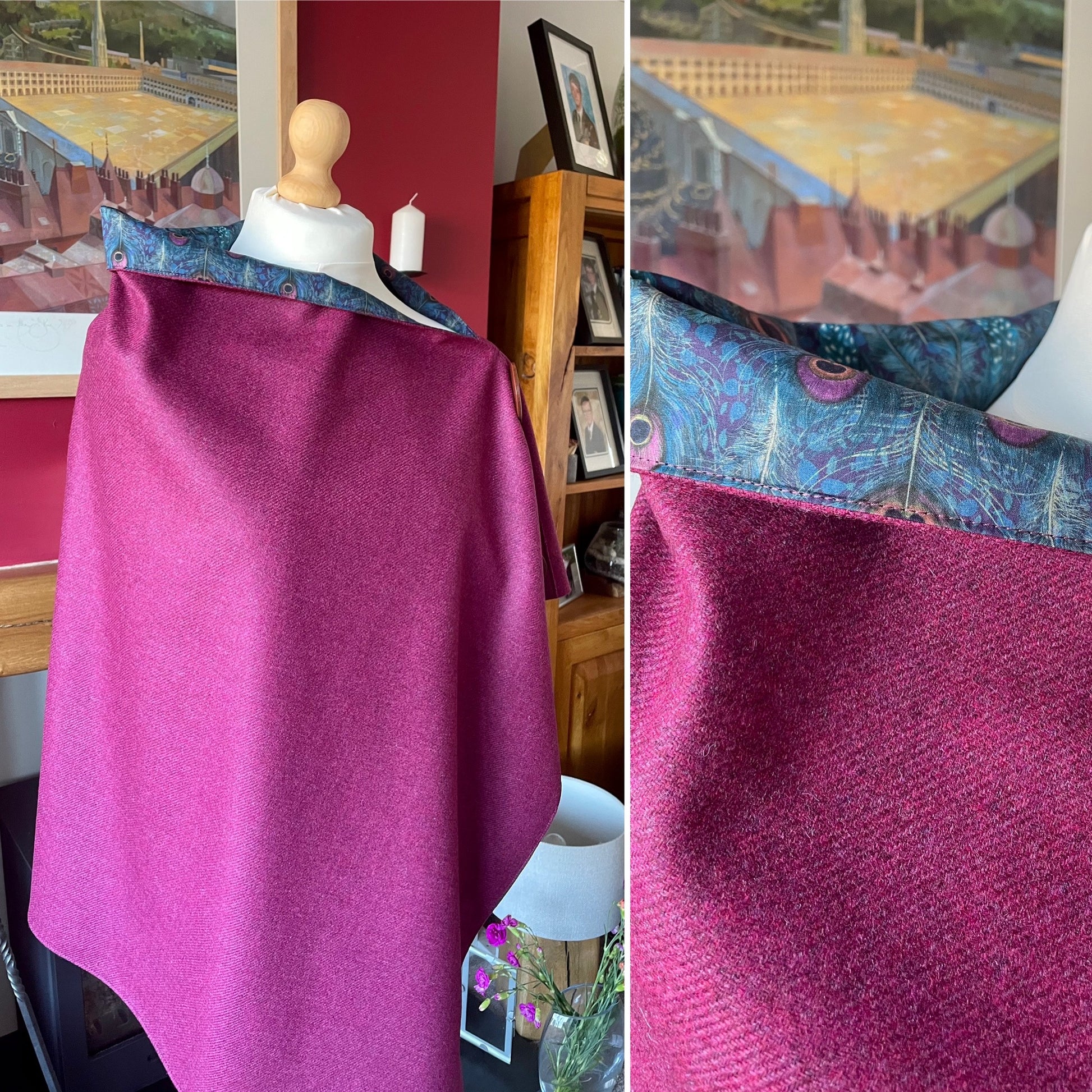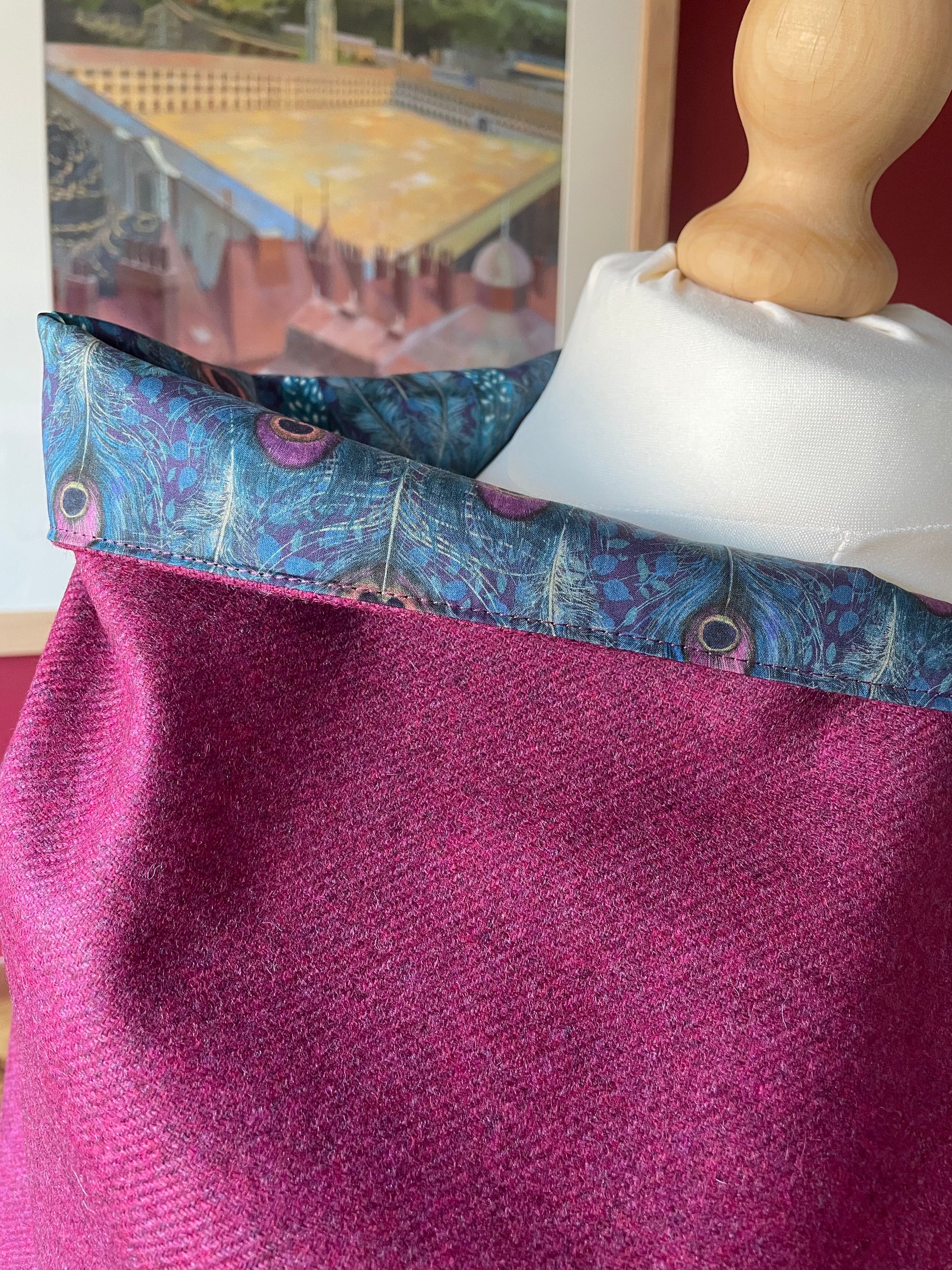 Cherry Merino Lambswool and Liberty Peacock Manor Tana Lawn.