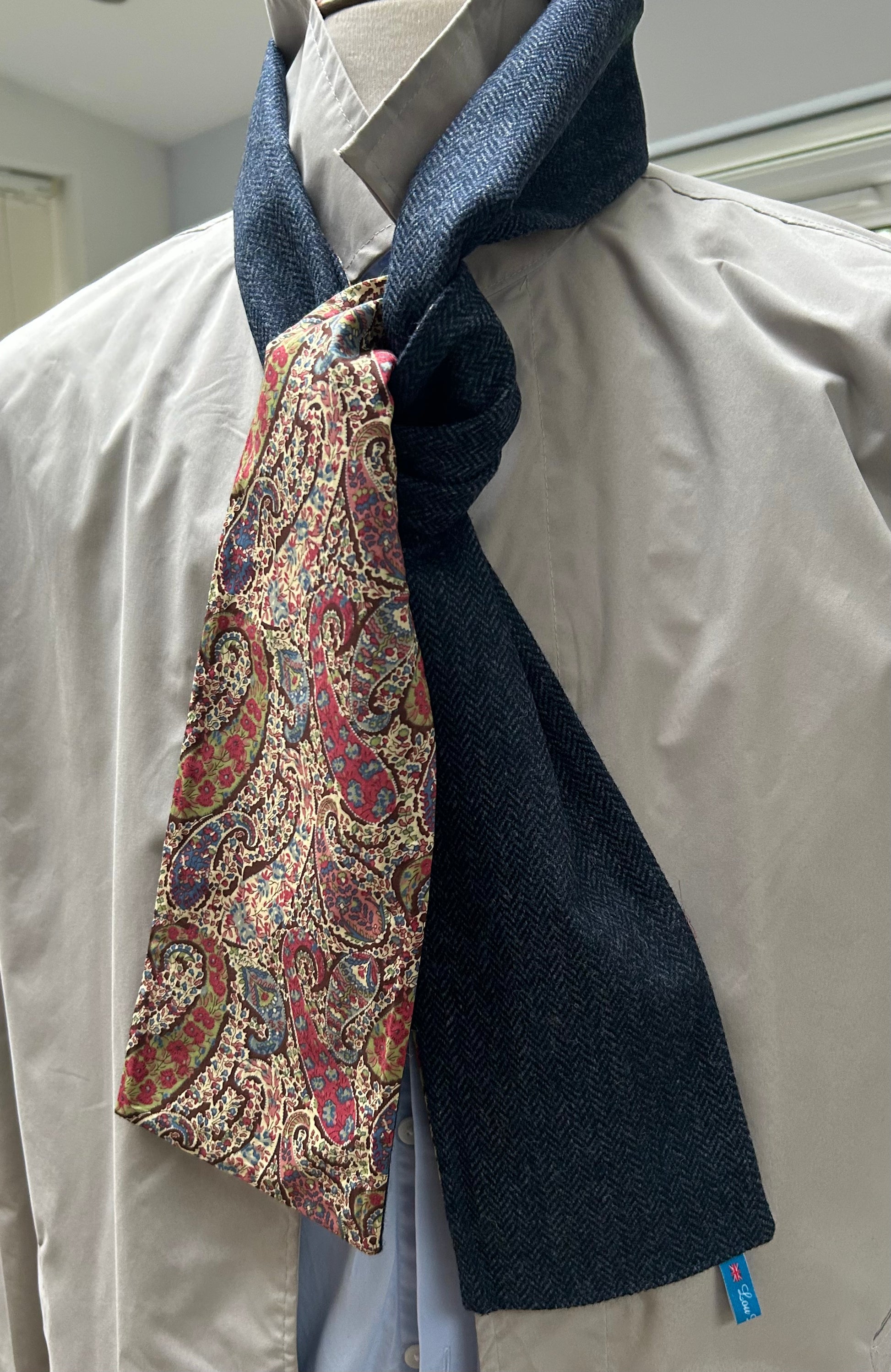 Dark Navy Merino Lambswool & Liberty Bourton Tana Short scarf. Approximately 1.48 in length and 13cm wide