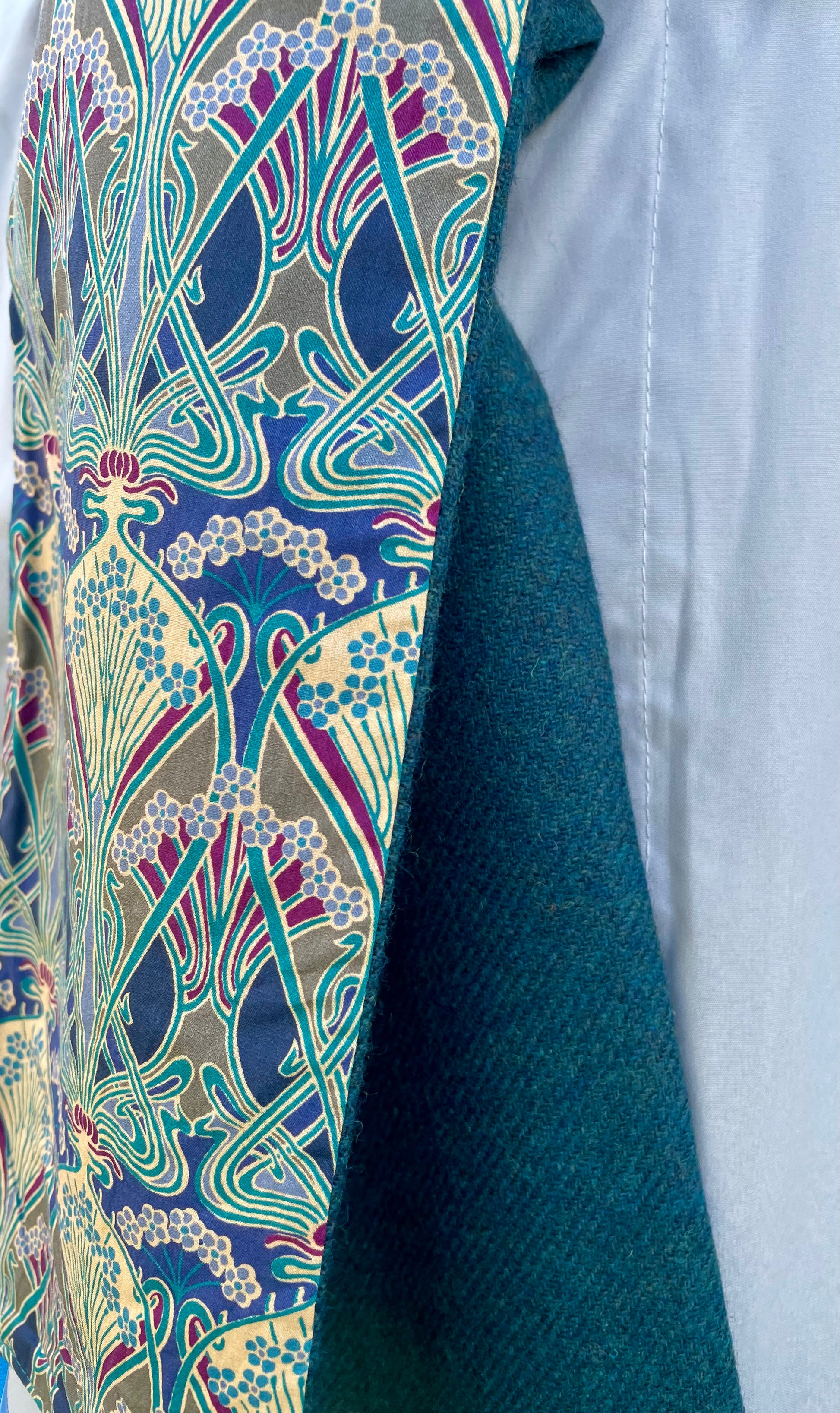 Pacific Merino Lambswool & Liberty Ianthe 2 Tana Lawn Short scarf. Approximately 1.48 in length and 13cm wide