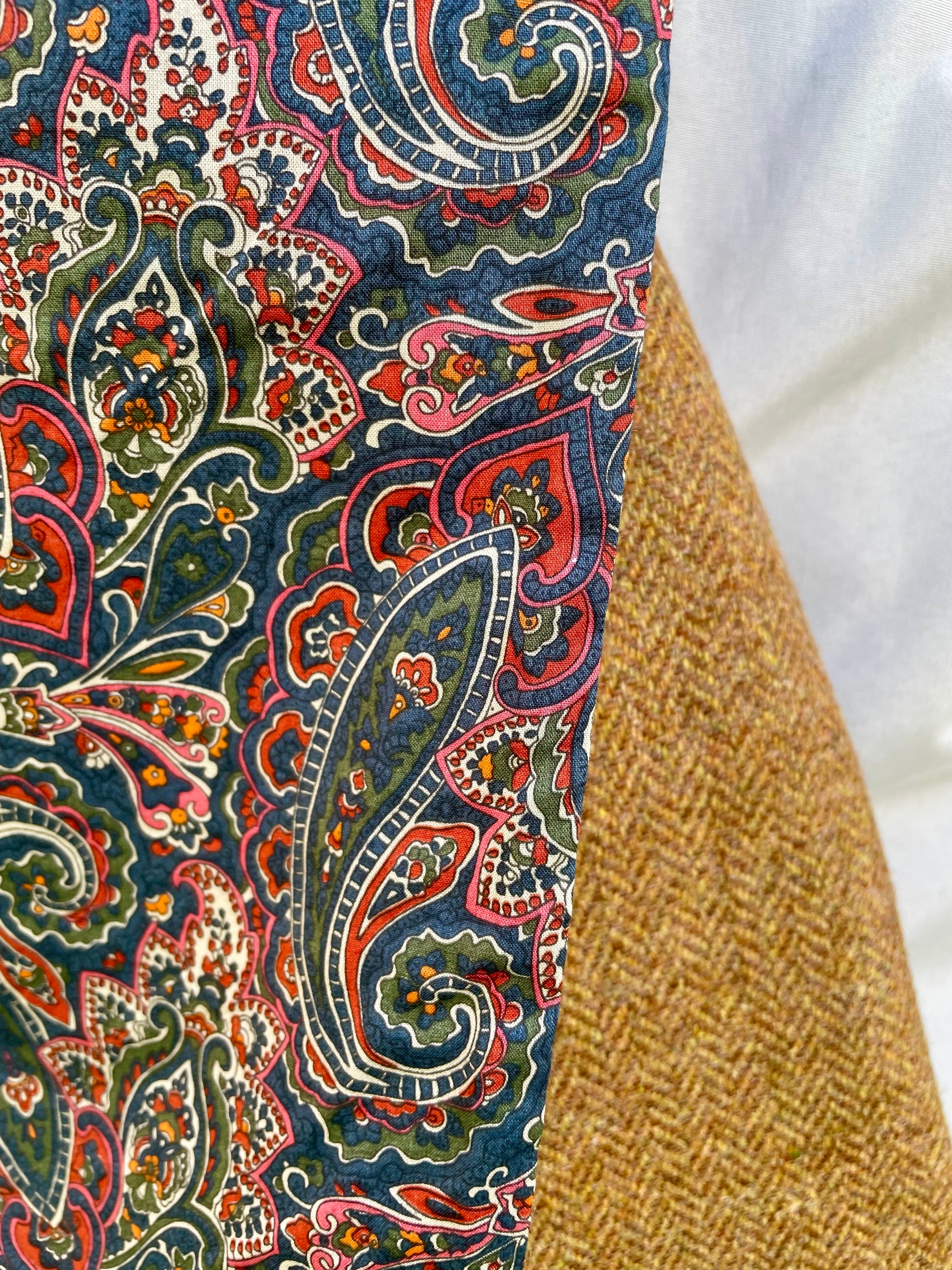 Apricot Merino Lambswool & Liberty Tessa Tana Lawn short scarf. Approximately 1.48 in length and 13cm wide