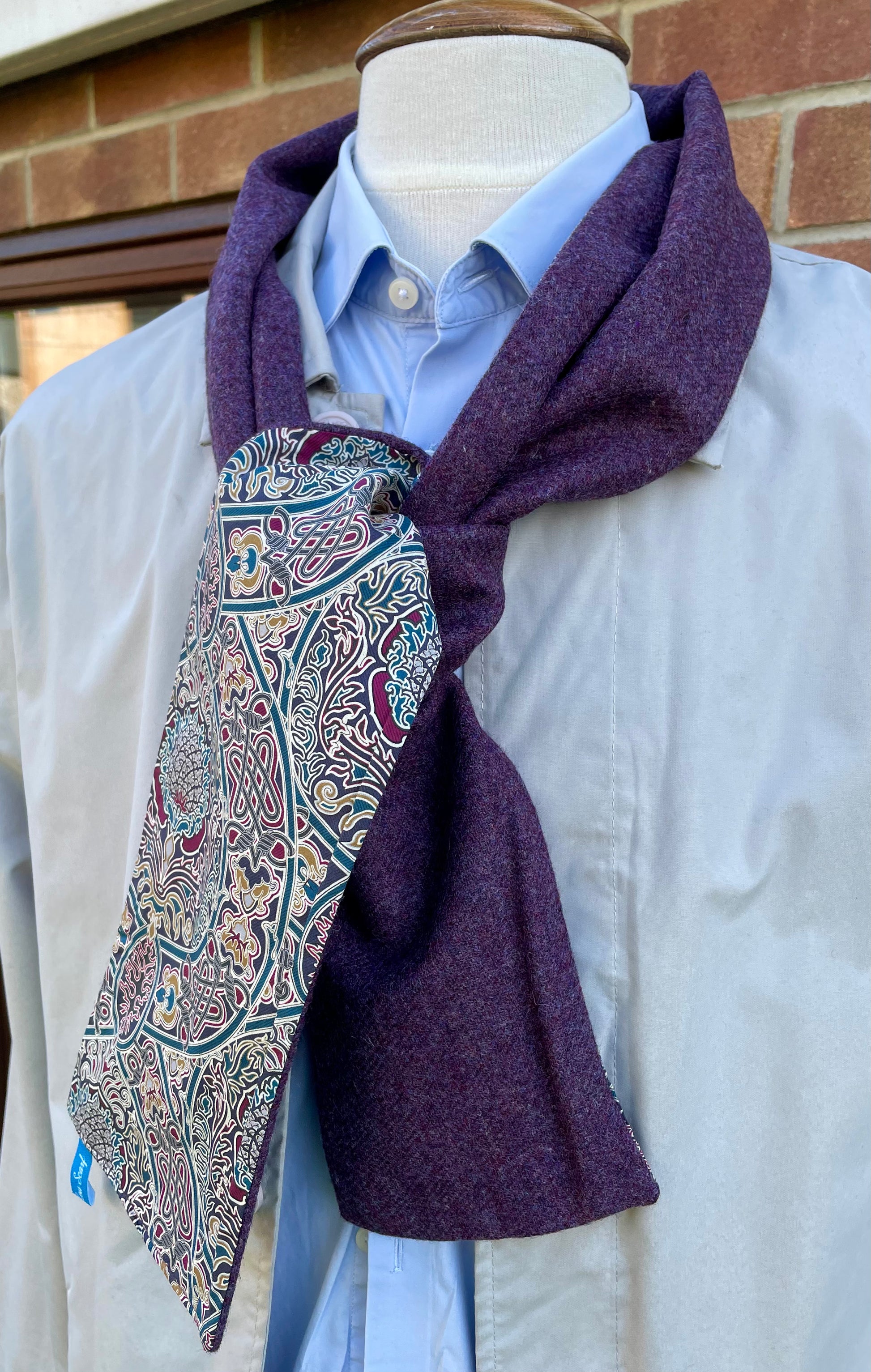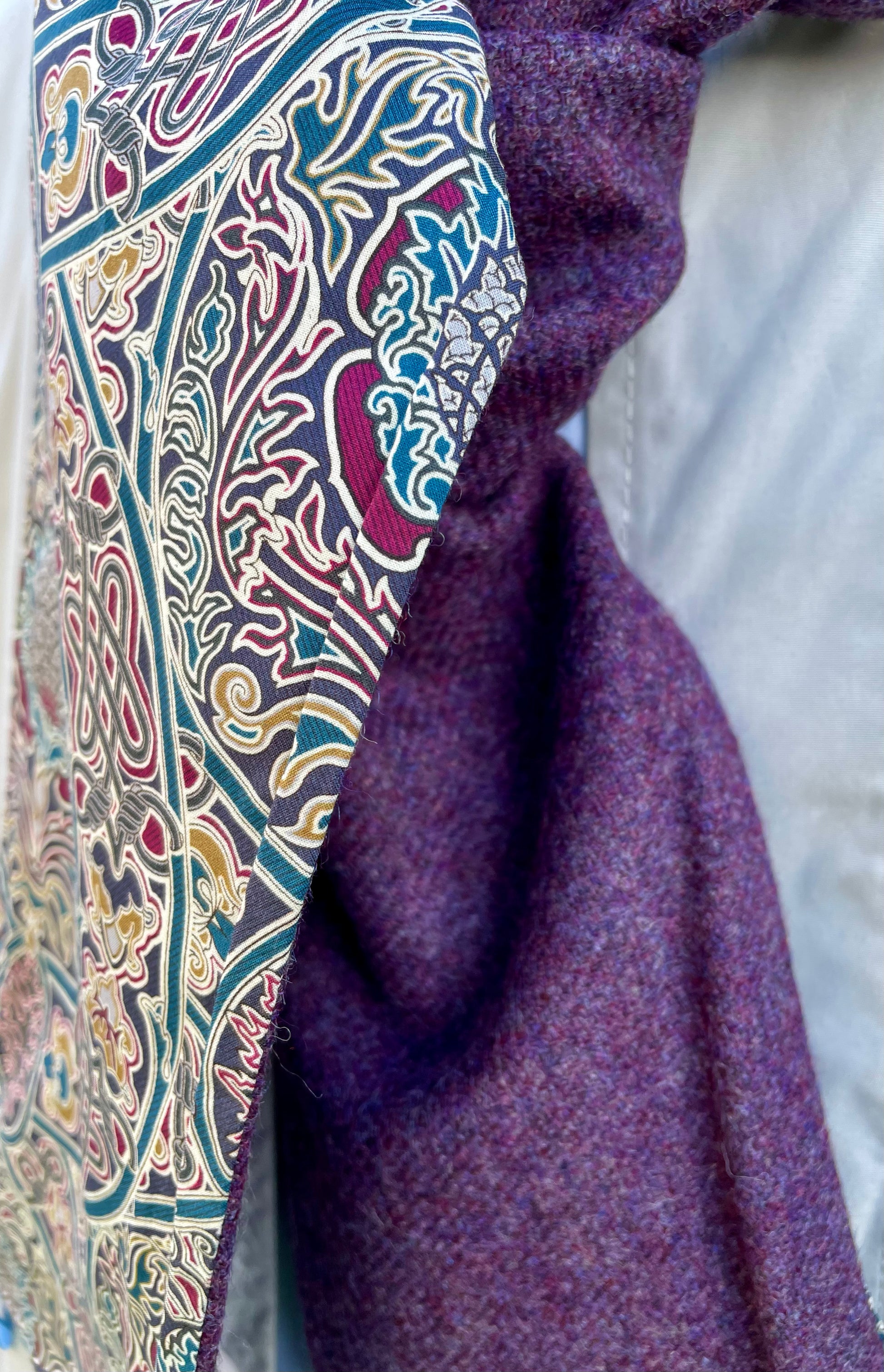 Grape Merino Lambswool & Liberty Gambier Tana Short scarf. Approximately 1.48 in length and 13cm wide