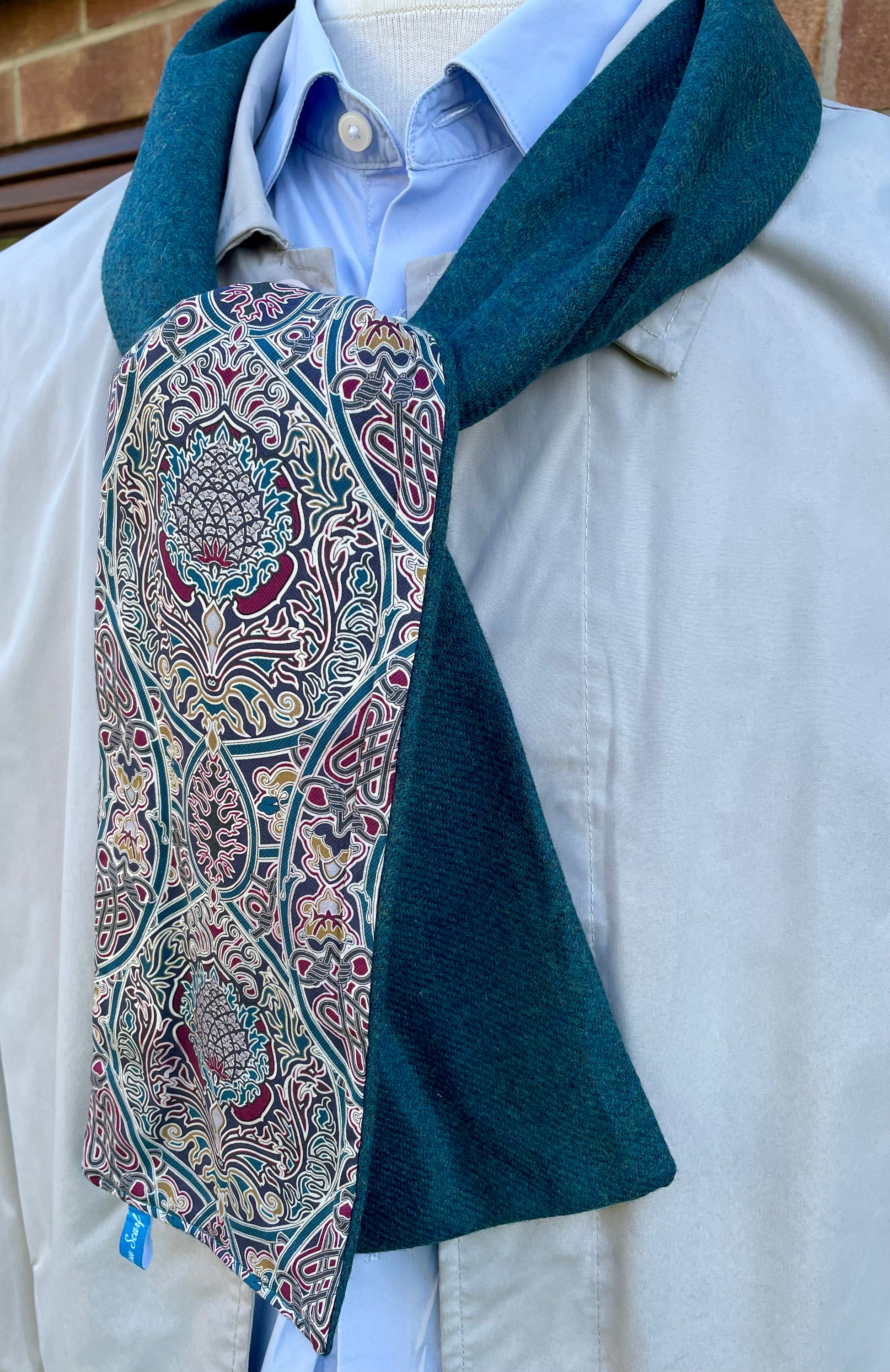 Pacific Merino Lambswool & Liberty Gambier Tana Lawn Short scarf. Approximately 1.48 in length and 13cm wide