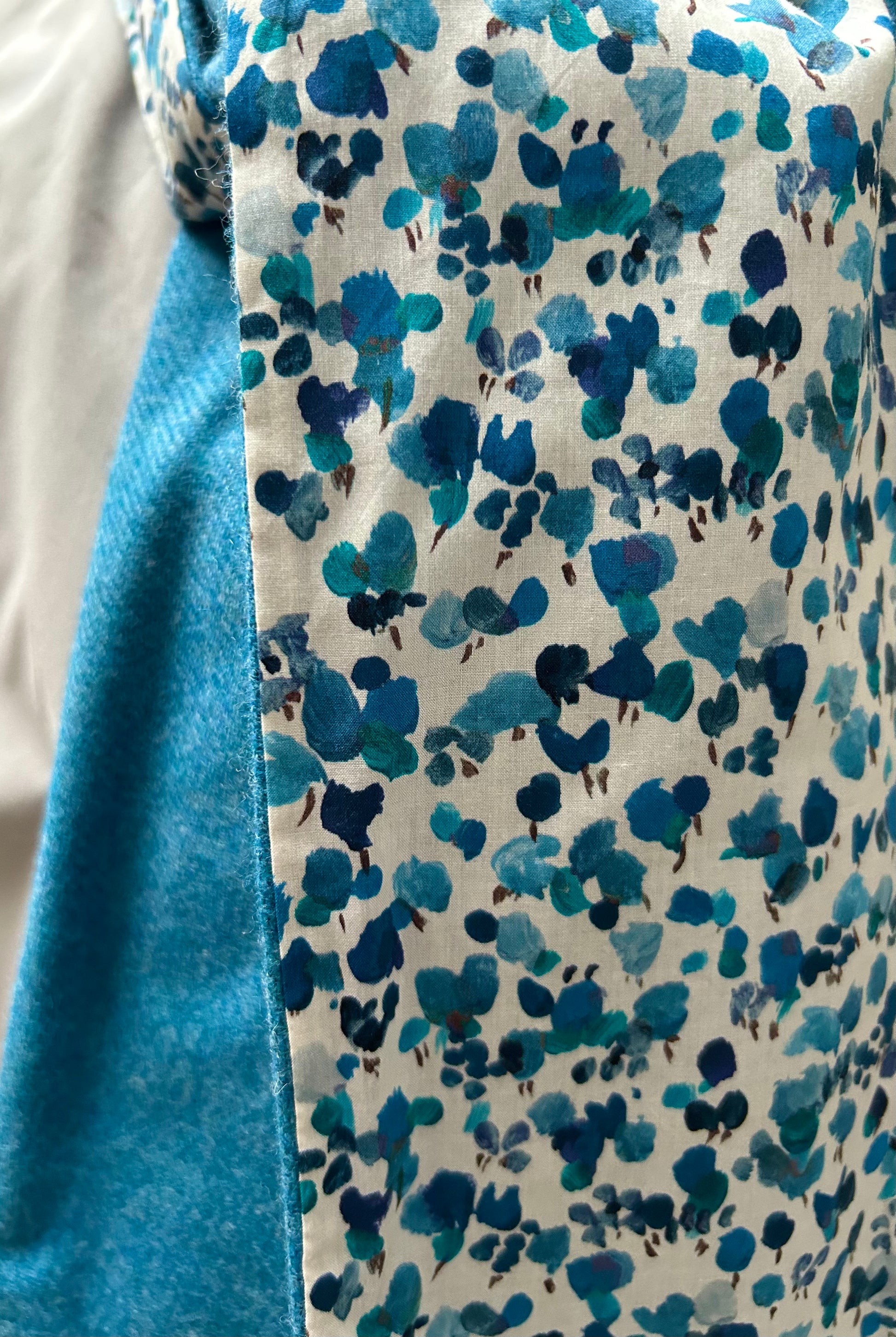 Bluejay Merino Lambswool and Liberty Rhapsody Tana Lawn cotton. Approximately 148cm in length and 13cm wide