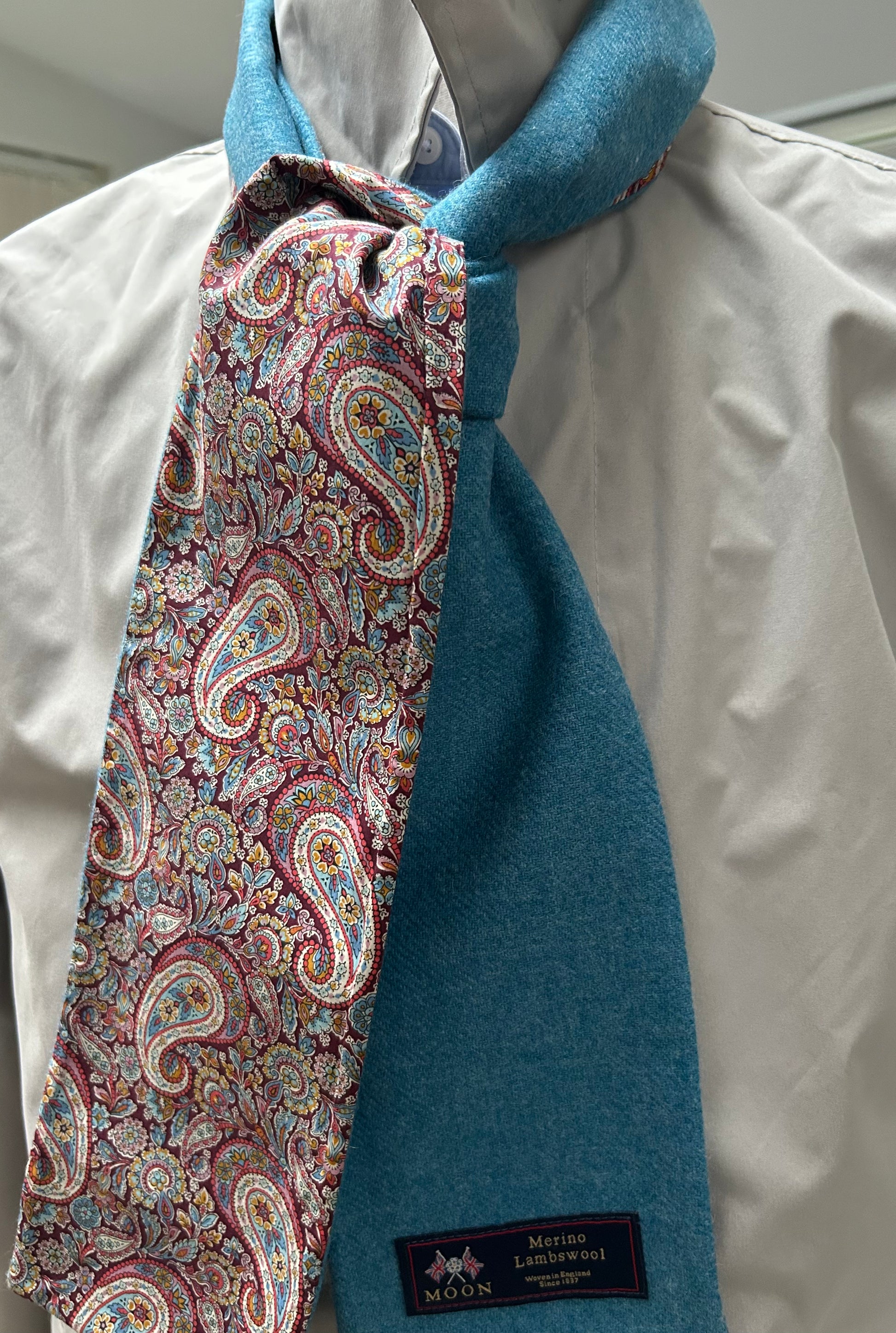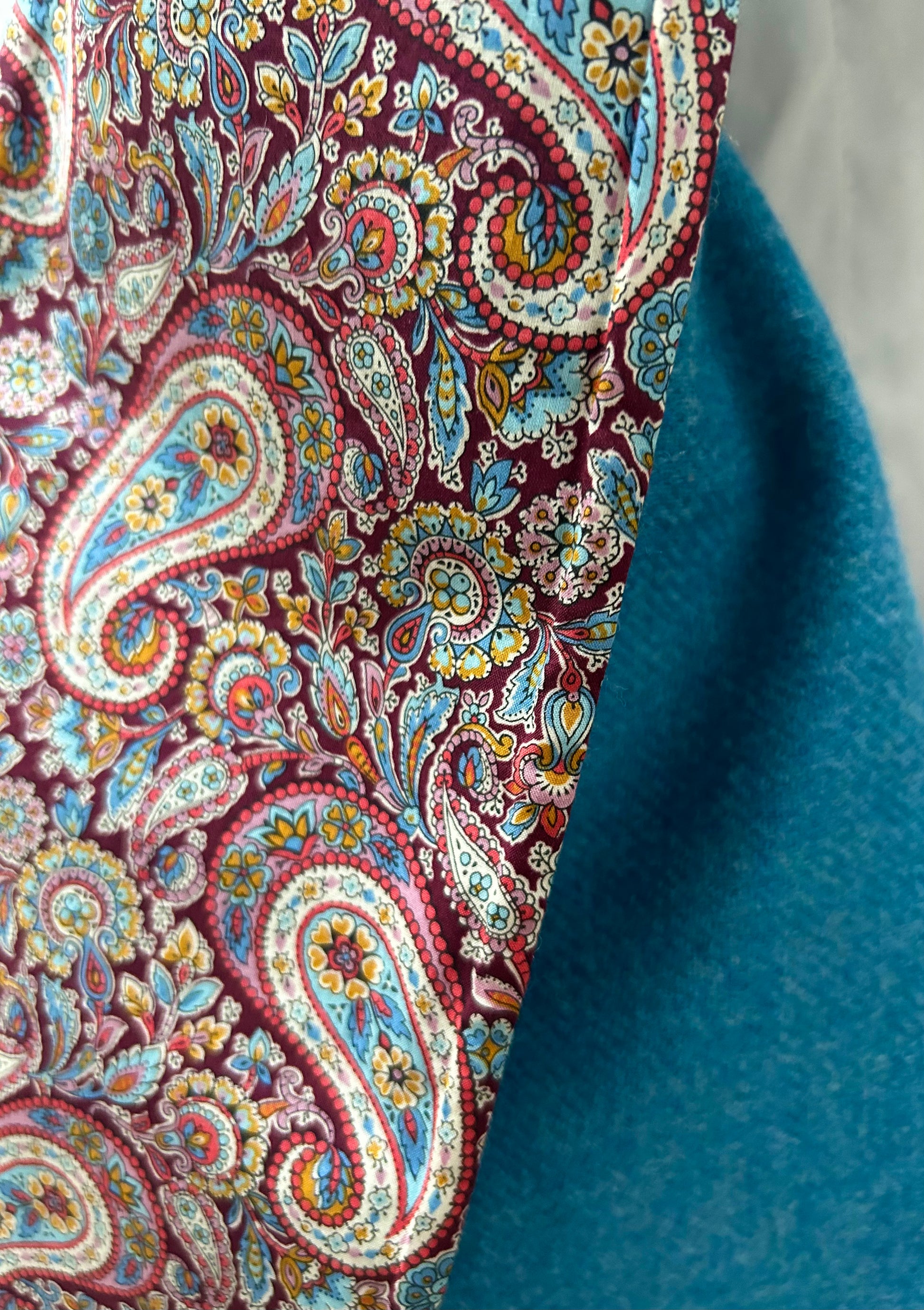 Bluejay Merino Lambswool and Liberty Lee Manor Tana Lawn cotton. Approximately 148cm in length and 13cm wide
